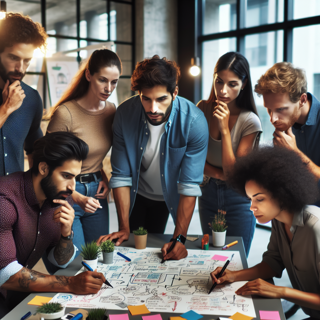 In a bustling tech office, two developers huddle around a single computer. One types furiously, while the other gestures at