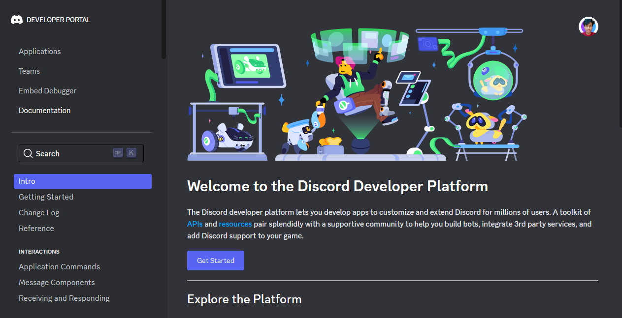 To get started with the Discord API, you need to create a Discord application on the Discord Developer Portal, obtain an API token, and define the permissions your application requires. You can use libraries and SDKs in various programming languages to simplify interaction with the Discord API.