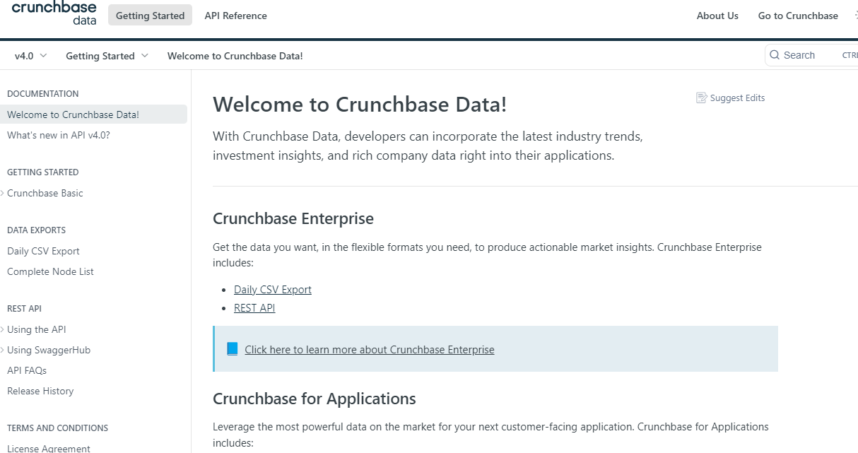 The Crunchbase API provides access to a wealth of data related to startups, businesses, investments, and funding rounds. Crunchbase is a valuable resource for entrepreneurs, investors, researchers, and developers looking for information about companies, their founders, funding history, and industry trends.