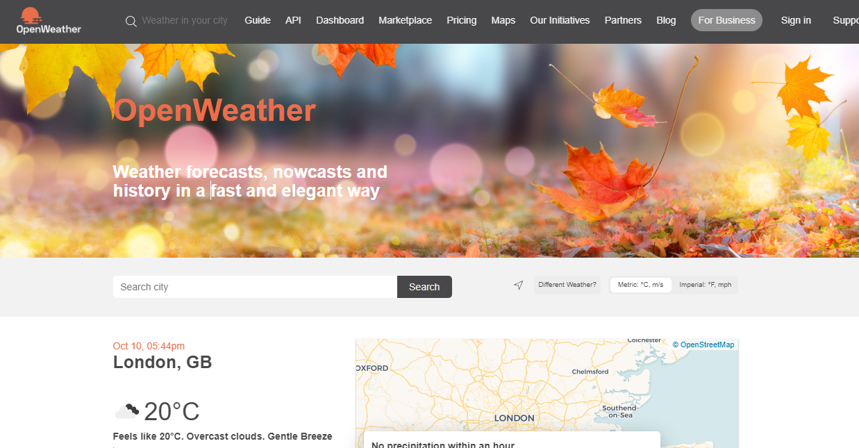 OpenWeatherMap is a popular weather data provider that offers an API that allows developers to access a wide range of weather-related data and integrate it into their applications or services.
