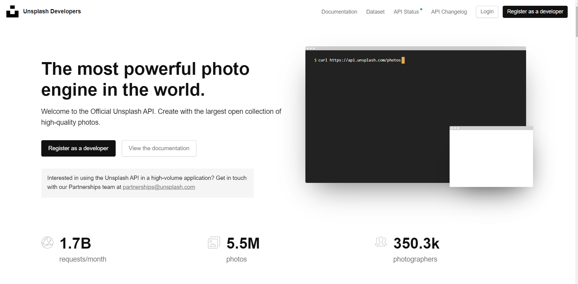 The Unsplash API provides access to a vast library of high-quality, free-to-use images and photographs. The API allows developers to integrate these images into their applications, websites, or services.
