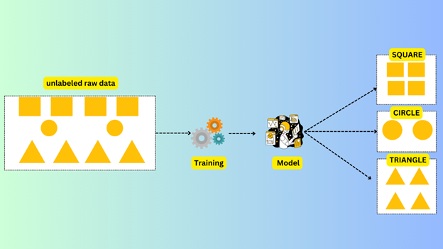 Consider the image below where we supply to the algorithm a dataset of shapes. We expect it to understand the shapes and learn them. When the model is trained it should group similar shapes correctly.