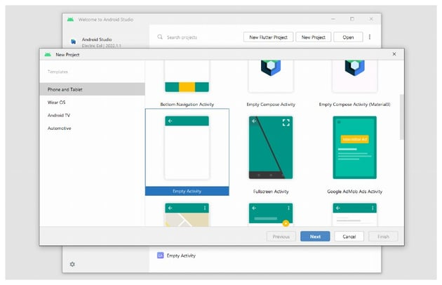 When creating a new project, choose a modern template like Empty Activity with Jetpack Compose.