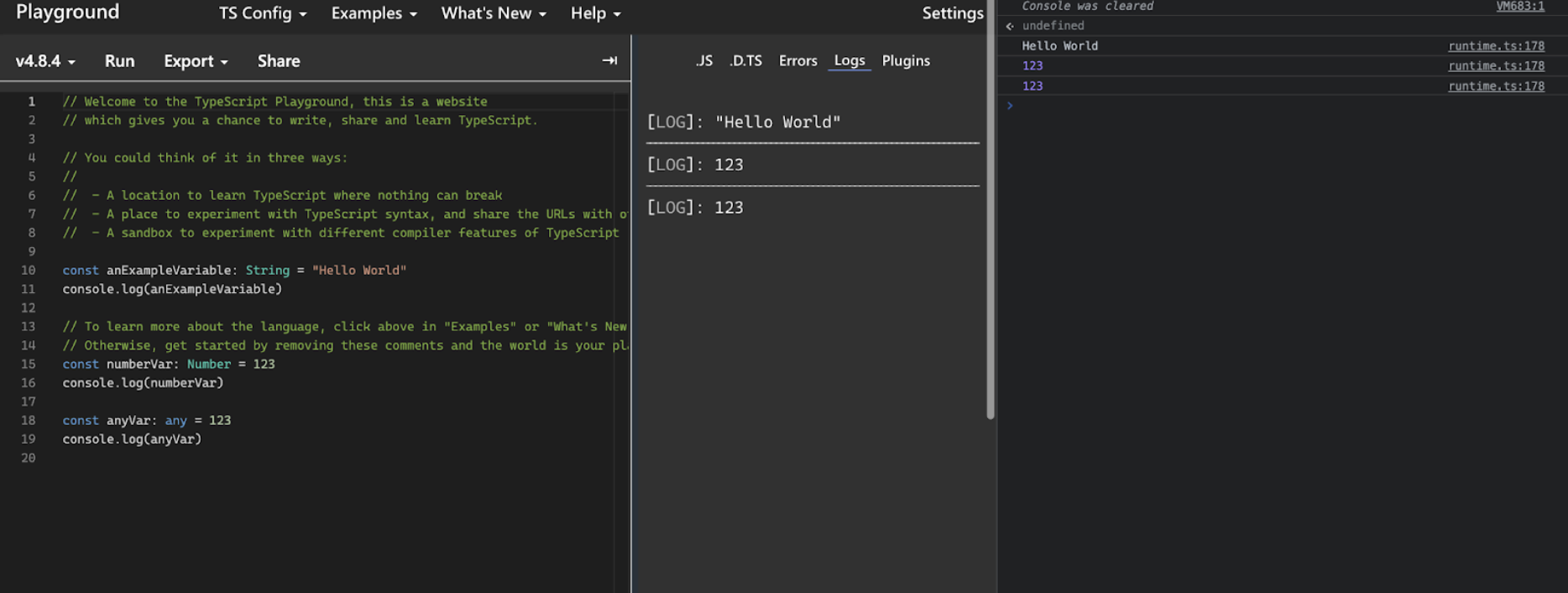 console.log(“Hello TypeScript!”);