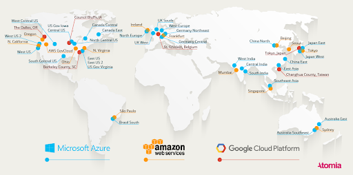 The top three cloud infrastructure providers of services are in several areas of the globe, including North America, South America, Europe, and Asia. However, there are certain regions of the world where all three industry-leading cloud providers need to offer their services, e.g., Africa. Except for South Africa, Google and Azure don’t provide any services in the entire continent.