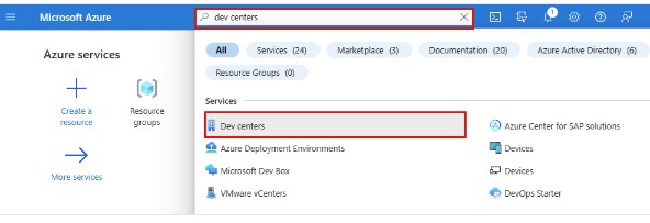 - In the search box, enter dev centers. In the list of results, select Dev centers.