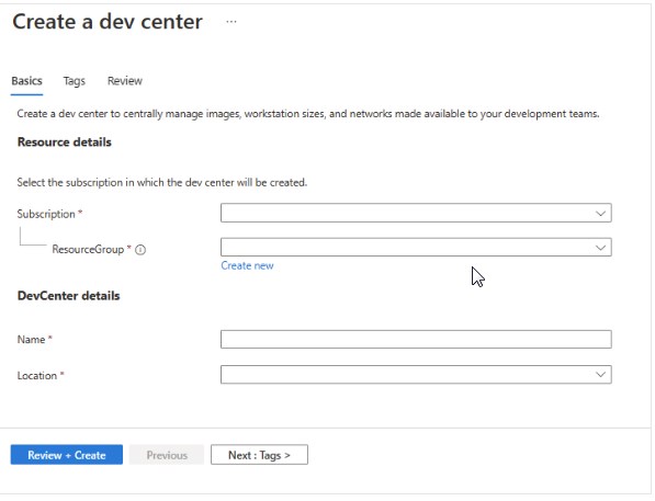 | Subscription | Select the subscription in which you want to create the dev center. |