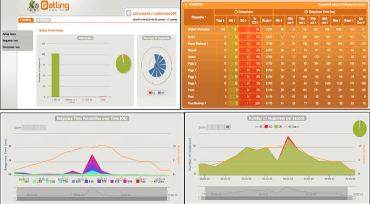 - Gatling generates detailed HTML reports with interactive graphs and statistics.
