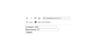 Blood Group: <input type = “text” name = “bloodgroup” /> <br>