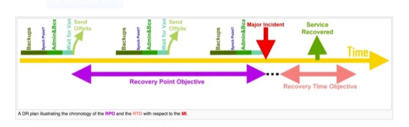The acceptable amount of data loss measured in time before the disaster occurs. for e.g., if a disaster occurs at 12:00 p.m (noon) and the RPO is one hour, the system should recover all data that was in the system before 11:00 a.m.