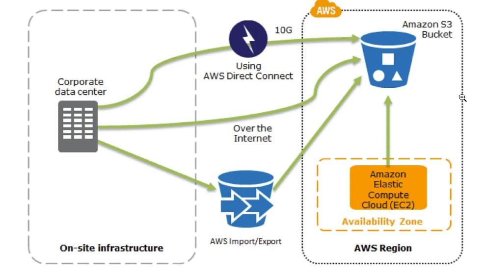 - AWS Direct connect can be used to transfer data directly from On-Premise to Amazon consistently and at high speed.