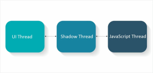 There are three threads running in React Native: the UI thread, the shadow thread, and the JavaScript thread.