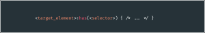 <target_element>: If the condition passed as an argument to :has() pseudo-class has been satisfied, the element targeted by the selector “target_element” will be targeted.