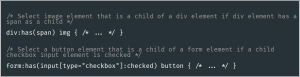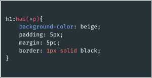 From the example, you can see that h1:has(+p) will select the <h1> element which has an immediate <p> element. Similarly, you can select any element by combining selectors.