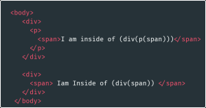 Let’s look at an example of selecting all the <div> elements that directly contains <p>