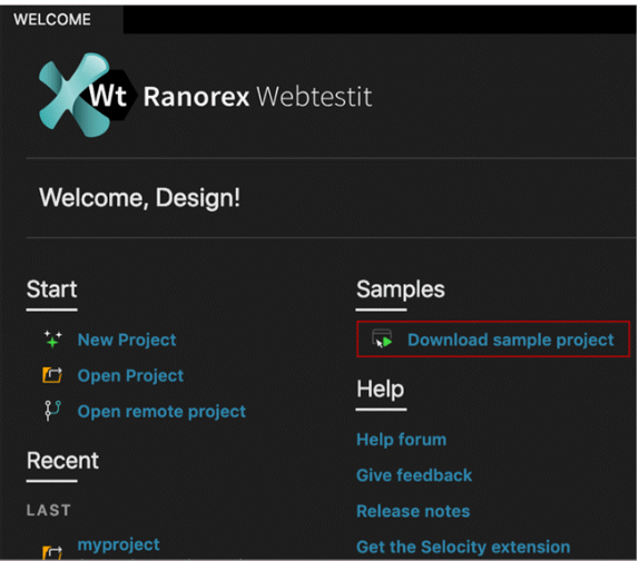 Step 1: Run Ranorex Webtestit and sign in. The Start screen will be shown.