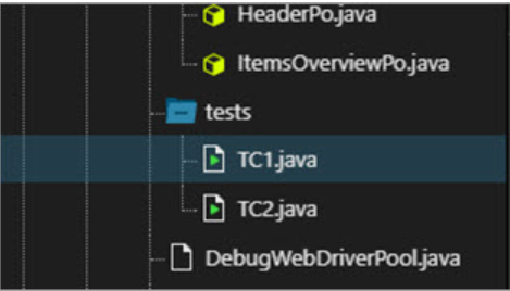 Step 5: Two test examples, TC1 and TC2, are shown in the page objects below. The first test case involves adding products to a cart and then checking out. The second test scenario validates the “quick checkout” procedure.