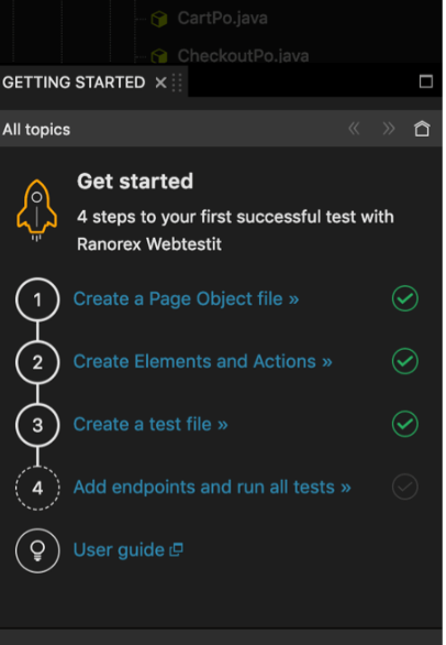 Step 6: The “Get Started” window can be located in the bottom left corner of Ranorex Webtestit.
