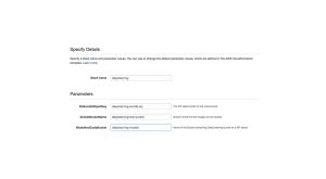 • Put the values needed for the CloudFormation Stack name, the code, the test bucket name, and the bucket where you have the model.