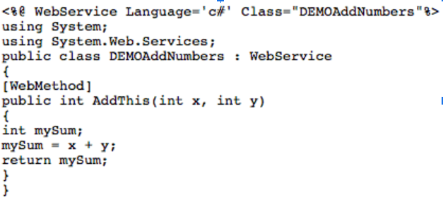 - Put the file in your wwwroot/WebServices directory as DEMOAddNumbers.asmx. In case you’re wondering, the file extension for ASP.NET is asmx.