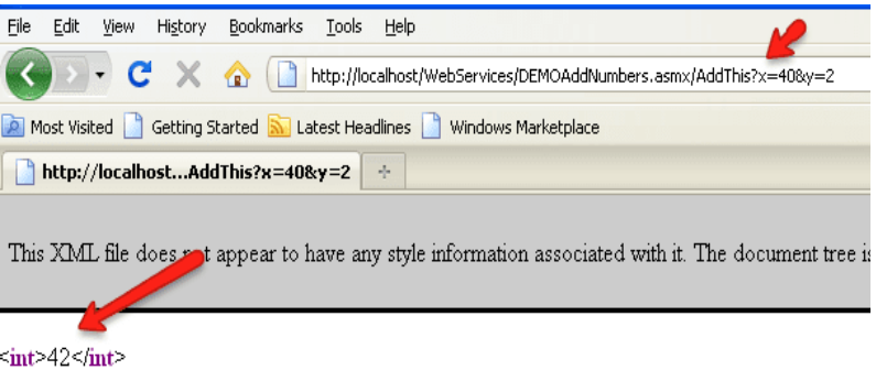 http://localhost/WebServices/DEMOAddNumbers.asmx/AddThis?x=40&y=2