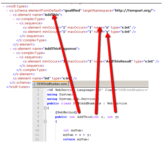 Take note of how the WSDL information corresponds to the code of our web services.