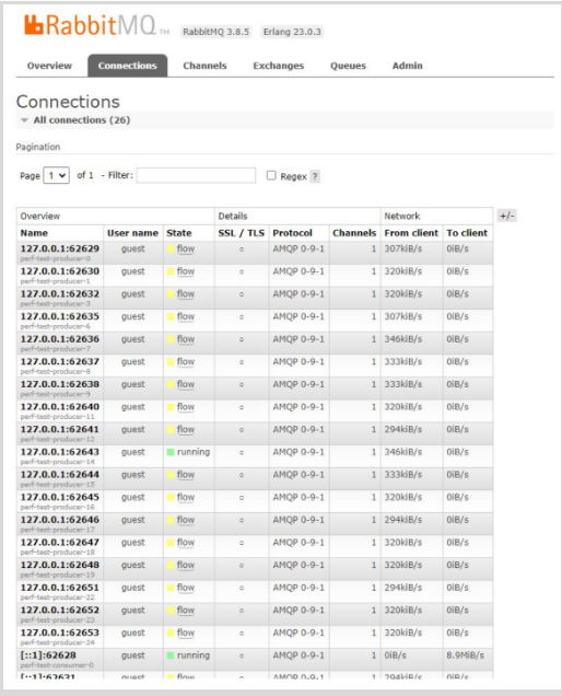 - heartbeat (default 60 seconds) – after 60s connection should be considered unreachable by RabbitMQ and client libraries. Server suggest this value to client libraries while establishing TCP connection at AMQP protocol level. Clients might not follow the server’s suggestion.