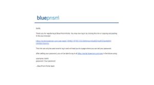 Step 4: At this stage, you must have received an email from Blue prism with regards to the account details for the user created on the Blue prism portal. The email will have a link through which you need to log in. Click on the link.