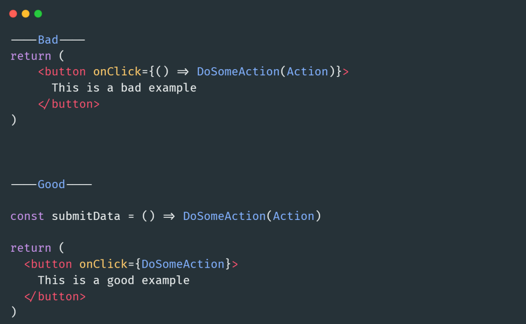 The tendency of React developers to define or create functions inside the render frequently leads to unexpected errors. It’s best to avoid defining a function inside the render. Try to keep the logic inside the render to an absolute minimum.