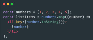 We can iterate over an array, and we can provide an array as children. This is one of the common patterns in React. We can use the JavaScript map method to iterate through the elements for every value!