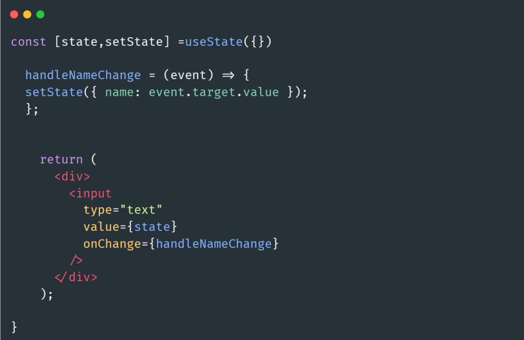 An input form element whose value is controlled by React is called a controlled component. A controlled input accepts its current value as a prop, as well as a callback to update that value, that’s the point of React.