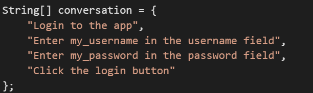 | for (String message : conversation) { // Interact with ChatGPT String response = gpt3.completePrompt(message); // Perform actions based on ChatGPT’s response if (response.contains(“Enter”)) { String[] parts = response.split(“Enter”); String value = parts[1].trim(); MobileElement element = driver.findElementById(“input_field_id”); element.sendKeys(value); } else if (response.contains(“Click”)) { MobileElement element = driver.findElementById(“button_id”); element.click(); } // Print ChatGPT’s response System.out.println(“ChatGPT: “ + response); } |