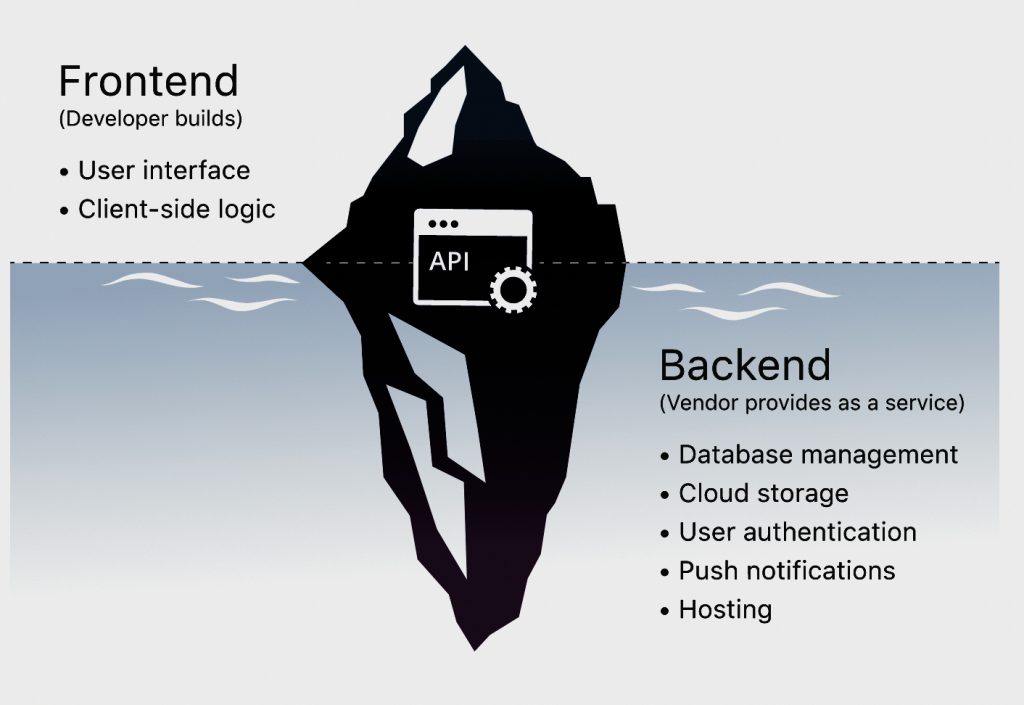 Suppose you’re directing a movie. In addition to shooting and directing sequences, a film director manages camera crews, lighting, set building, clothing, actor casting, and the production timeline. Imagine a service that handled all behind-the-scenes tasks so the director just had to direct and film the sequence. The vendor handles the ‘lighting’ and ‘camera’ (server-side* functions) so the director (the developer) may concentrate on the ‘action’ — what the end user sees and experiences.