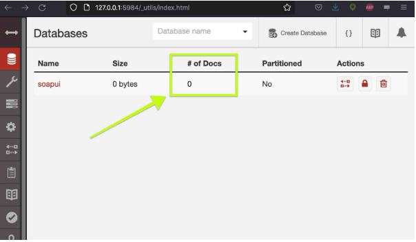 5. Navigate to http://127.0.0.1:5984/_utils/index.html. Now see if soapUI shows 0 docs.