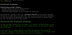 With this, the config directory, which stores all of the setup files, may be initialized. Basically, this is executed anytime a piece of code is added or removed from the configurations. The providers are downloaded at your command (basically AWS plugin in our case).
