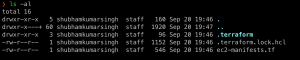 Step 1: Go to the location where you saved the manifest. The current working directory should be the same as the location of your Terraform manifests. Now let’s run terraform init. This would start the terraform and load the AWS HashiCorp plug-in. Along with it, a terraform.lock.hcl file is generated. It saves the version we’re using so that if there are any changes in the future, it can refer to it.