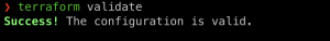 Step 2: At this point, we can run terraform validation. It will notify you if there is a problem with the file. Otherwise, a configuration valid message will be displayed on the screen.