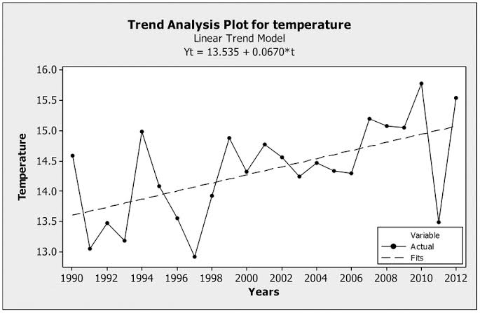 Suppose we have collected temperature data for a specific location over several years. We can start by visualizing the data to observe any trends or seasonality. In this example, we’ll use Python and its libraries to analyze the data.