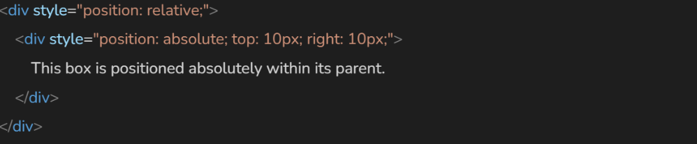 An element with position: absolute is positioned relative to its nearest positioned ancestor and the ancestor must have a position value other than static. If no such ancestor exists, it is positioned relative to the initial containing block.