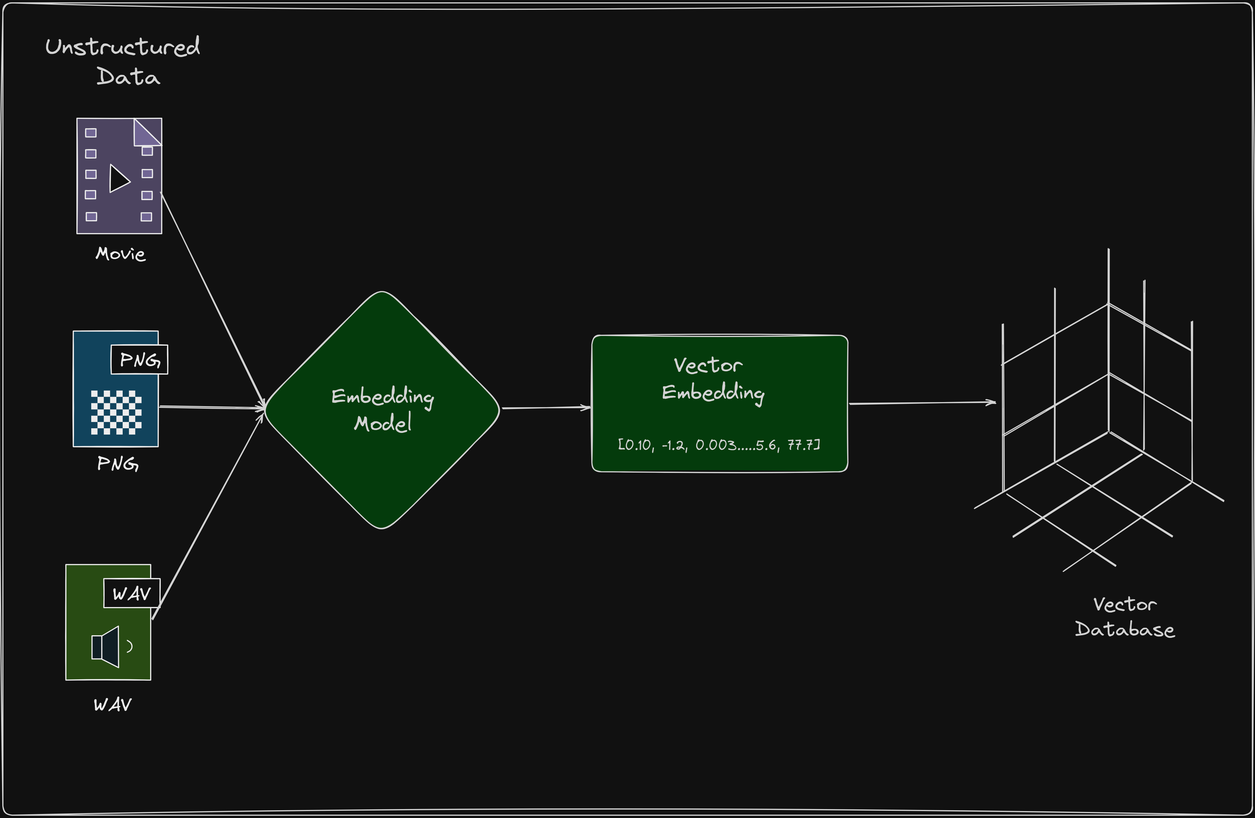 So, in terms of storage the operation is simple, the data is converted to vector by an embedding model or an output of a machine learning model and stored.