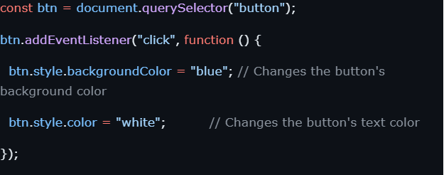 In this example, clicking the button changes its background color to blue and the text color to white.