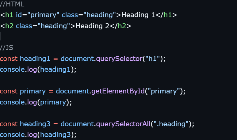 We can also select HTML elements similarly to how we target them in CSS using the querySelector() and querySelectorAll() methods. These methods allow us to use CSS selectors as arguments to select elements that match specific criteria.