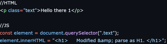 In the example above, I selected the <p> element by passing “text” as the ID to the getElementById() method. After selecting the element, you can modify it as needed.