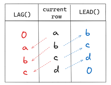 The LEAD() function is used to retrieve a value from a subsequent row within a partition, i.e., the preceding value or next row in the ordered set of rows.