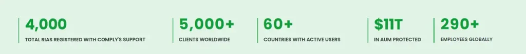 With employees located throughout the USA and globally, Comply services thousands of financial institutions, including Broker Dealers, Investment Banks, Private Funds, RIAs and Wealth Managers who rely on Comply to power their compliance programs.